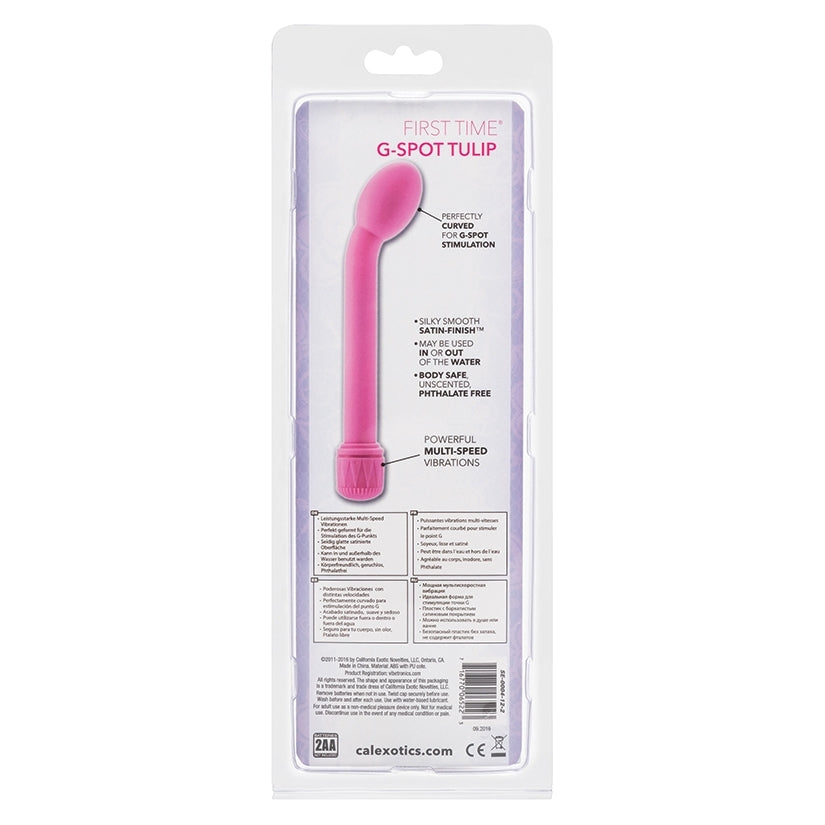 The exotic First Time G-Spot Tulip is a lightweight pastel vibe made from body safe ABS with a satin finish. For maximum pleasure, the velvety soft, sleek and slender stimulator features a solid shaft and perfectly angled tulip bulb- shaped tip. Tantalize your erogenous zones with the power-packed multi-speed vibe. Your imagination will run wild. The massager is waterproof and easy to use. To control the intensity of your intimate experiences simply twist the multi-speed function located in the end cap. You can take it nice and slow, or