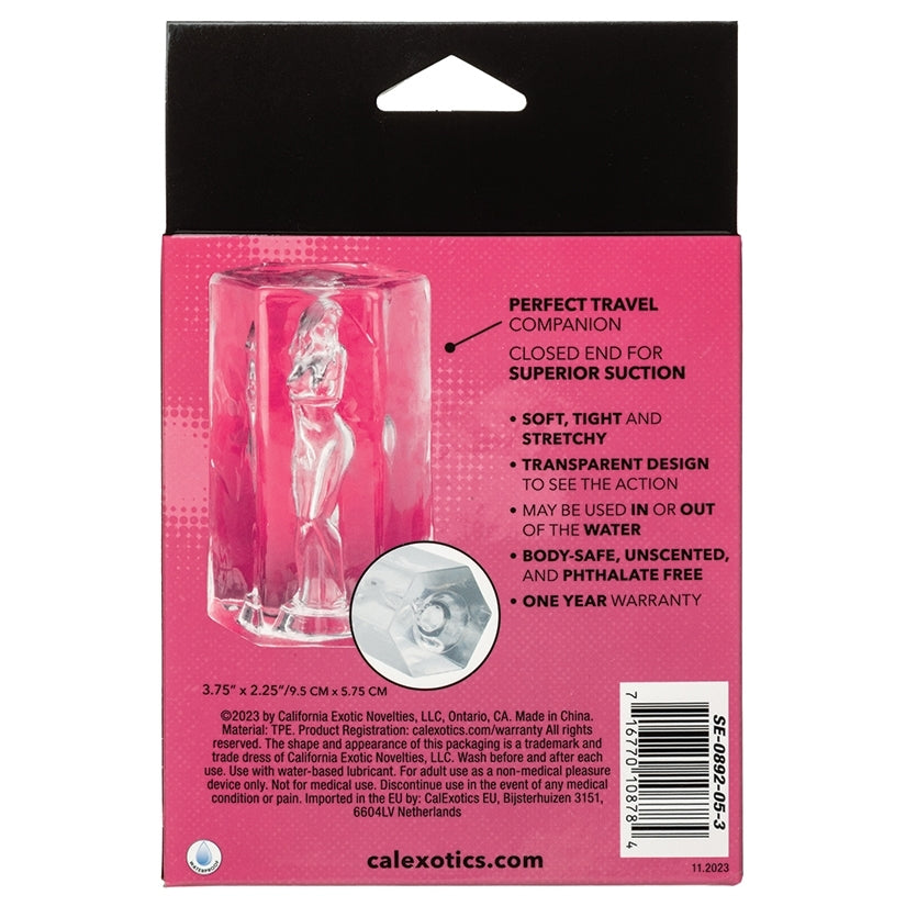 Crafted for those who appreciate sensuality and excitement, this masturbator offers a personal journey of fulfillment. Designed as the ideal travel companion, this piece brings a sense of adventure to your intimate moments. Its transparent design is not just aesthetically pleasing but also allows you to immerse fully in the visual excitement of the action. The closed end of the masturbator intensifies the experience by creating superior suction, amplifying your pleasure with every use.