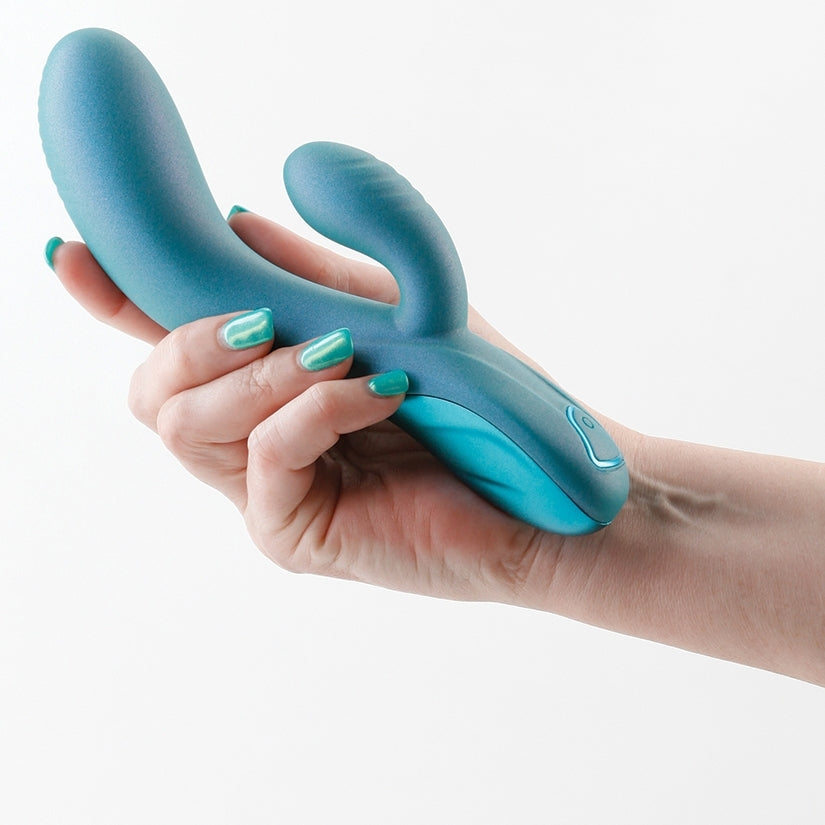 finished with a shimmery plush silicone coat, featuring multiple speeds and a