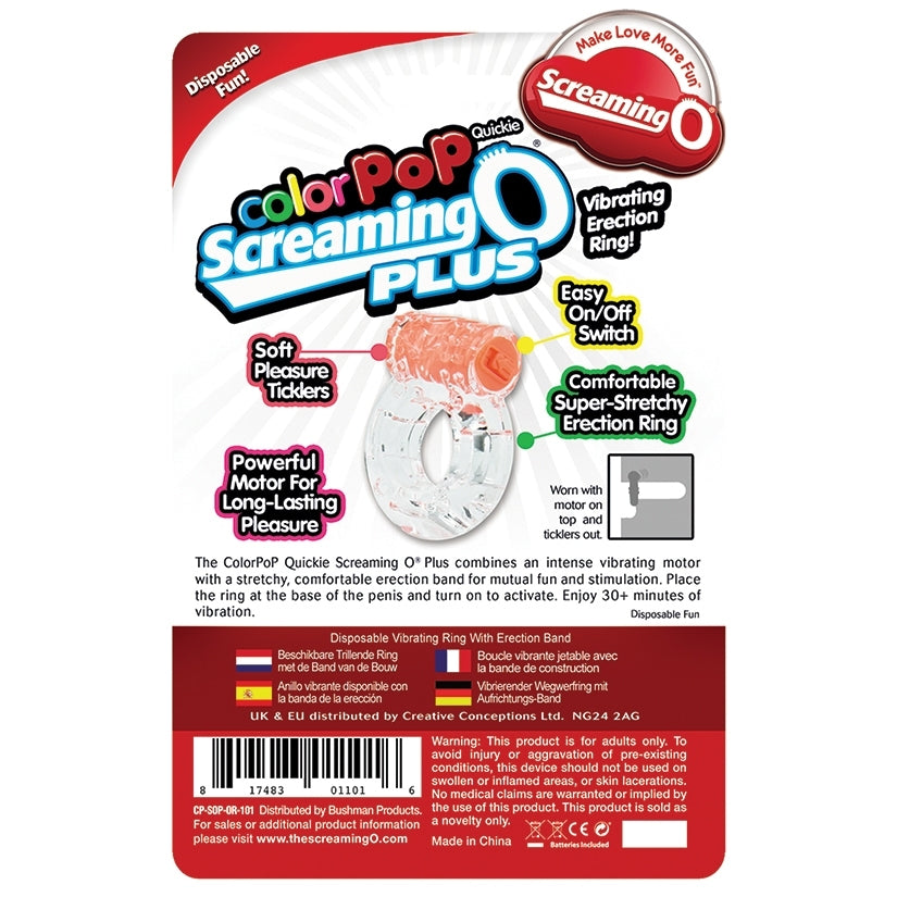 The ColorPoP Quickie Screaming O Plus vibrating ring offers powerful vibration