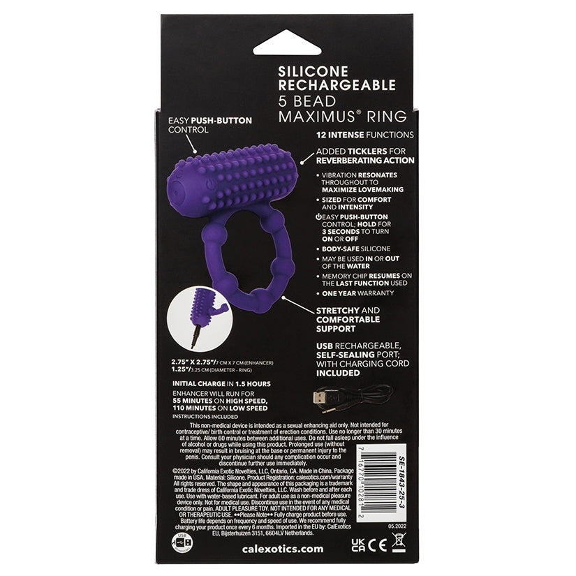 Double your pleasure when you slip on the Silicone Rechargeable 5 Bead Maximus