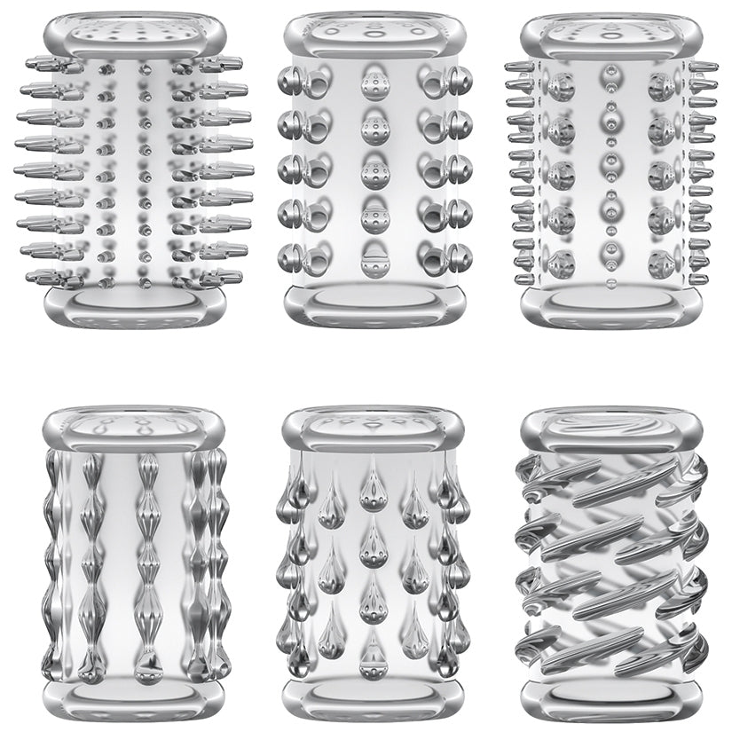 Stay Hard Cock is a 6 piece kit, providing different textured sleeves to slide